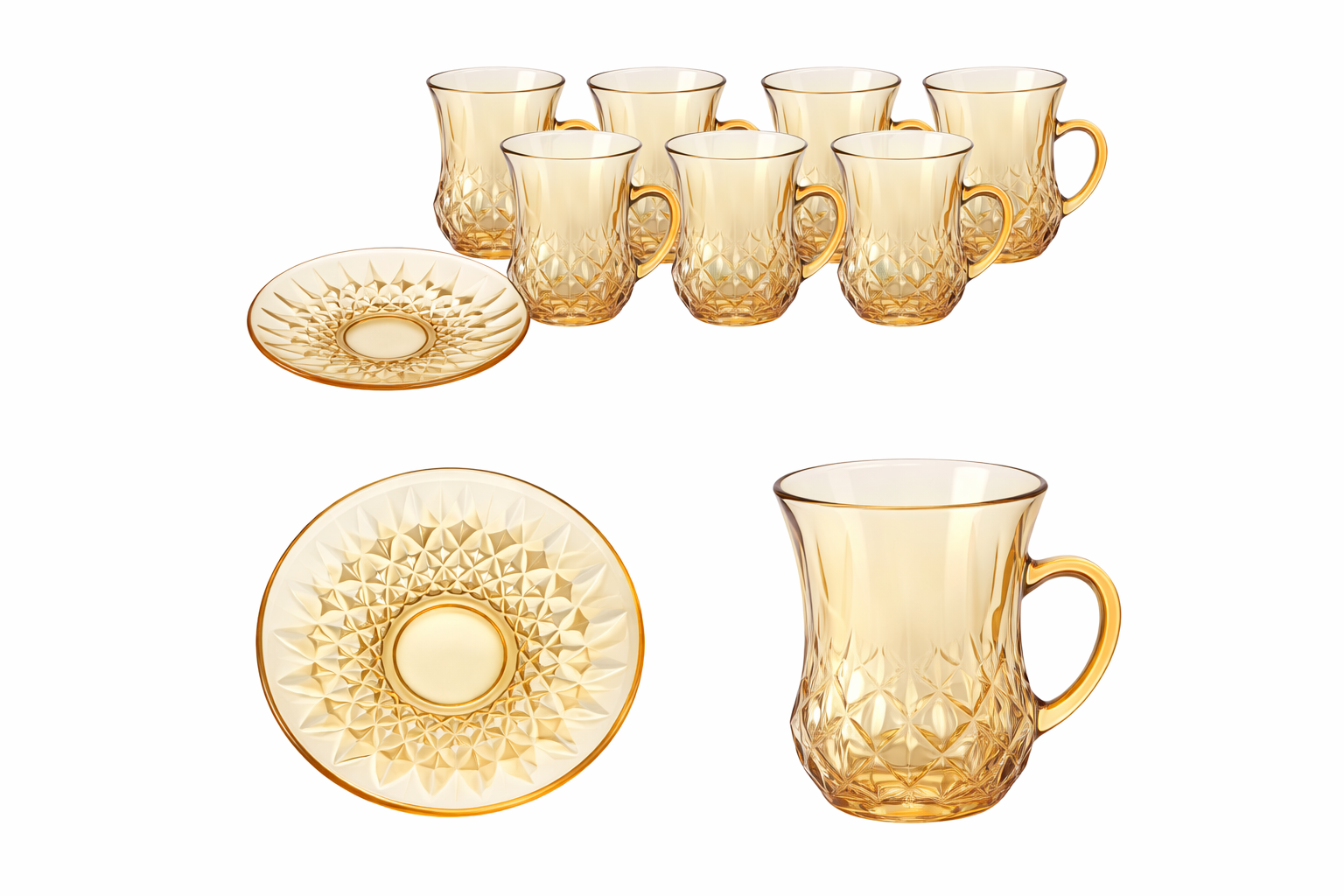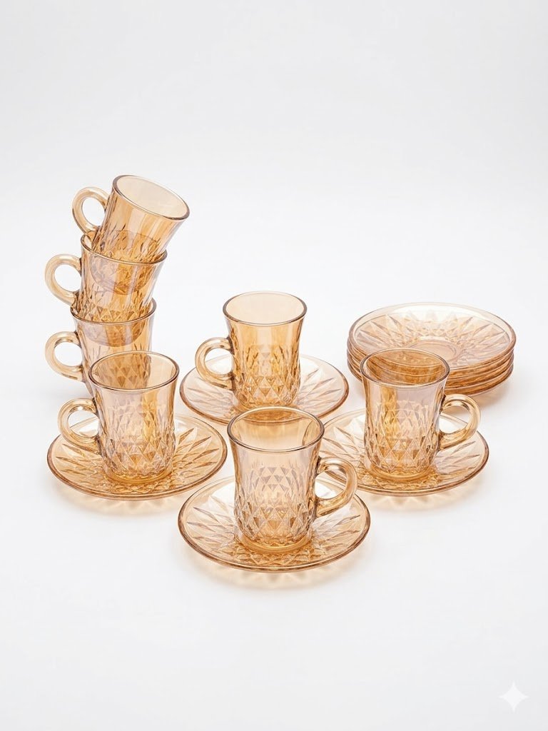 Amber Glass Tea Cup Set – 6 Cups