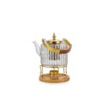 Teapot - Luxury Ribbed Glass Teapot with Gold Accents & Candle Warmer ll