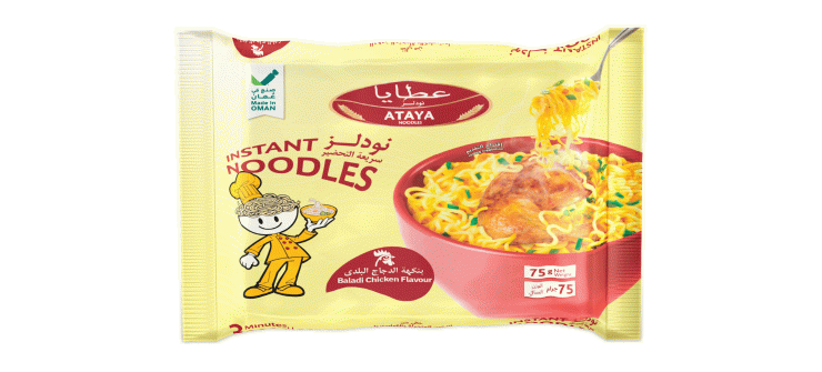 Enjoy the delicious taste of Ataya Instant Noodles Baladi Chicken Flavour, made with a savoury seasoning blend inspired by traditional Baladi-style chicken recipes.