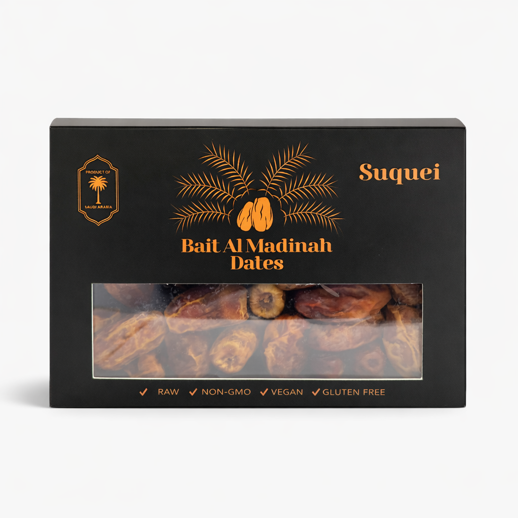 Bait Al Madinah Suquei Dates are premium-quality dates sourced from Saudi Arabia, particularly known for their naturally sweet flavour, soft texture, and rich caramel-like taste. Suquei dates are a popular variety enjoyed across the Middle East for both daily consumption and special occasions.