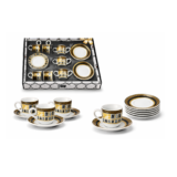 Tea Cup Set – Crystal Clear – with Saucers – 12 Pieces (Cut Glass Design)