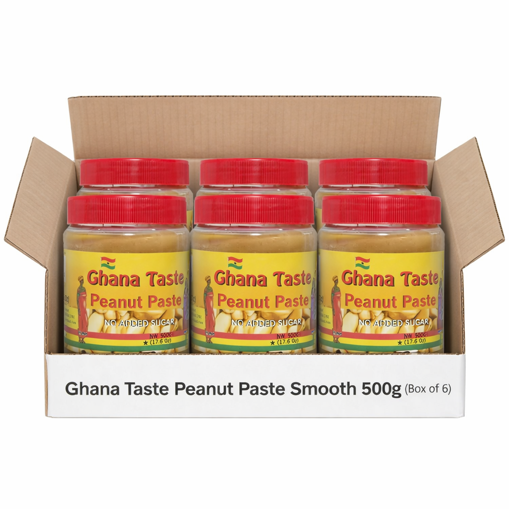 Ghana Taste Peanut Paste Smooth 500g is made from carefully selected peanuts, finely ground to create a rich and creamy texture. Ideal for cooking, sauces, stews, baking, and traditional African dishes, it delivers a natural and authentic peanut flavour.