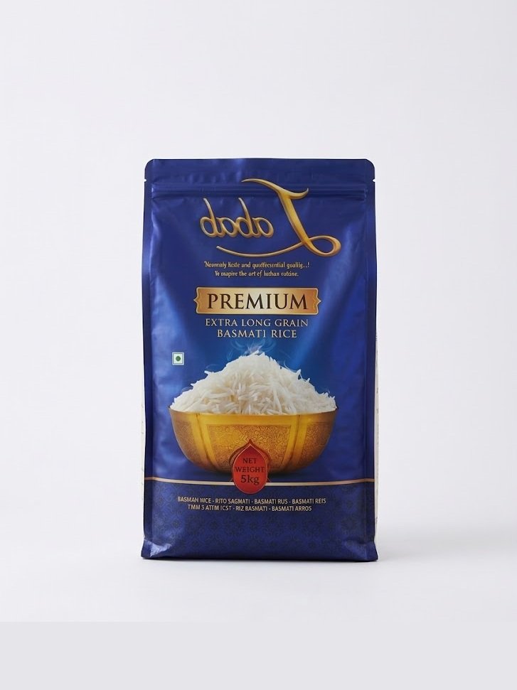 Premium quality basmati rice, 5kg bag. Long-grain, aromatic, and ideal for everyday cooking.