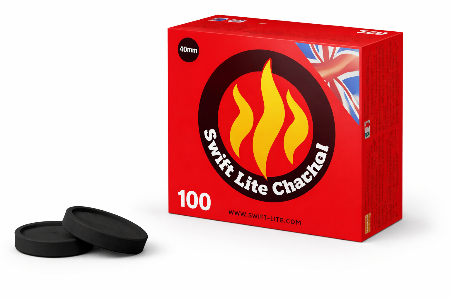Premium quick-light charcoal discs designed for shisha, incense, and traditional burners. Swift Lite Charcoal ignites quickly and burns evenly, providing consistent heat for a smooth experience.